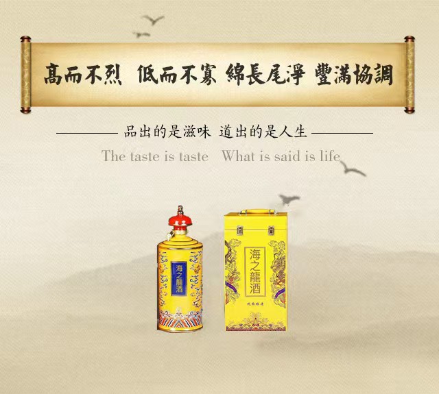 “海之龙”系列酒分为:银龙,金龙,中国龙,5A浓妆,青花瓷等。它们以时尚、尊贵、高雅的设计理念与琼浆玉液的原生态酒水搭配完美诠释了中高端白酒。一经推出受到广大消费者和国家相关部门的认可和好评。