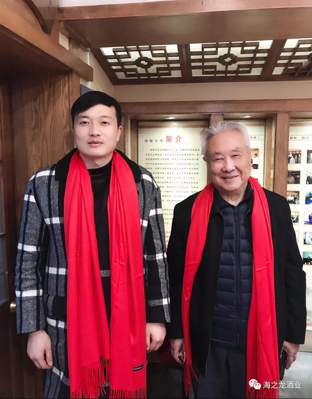 毛主席警卫队长陈长江与海之龙酒业董事长黄曙光合影