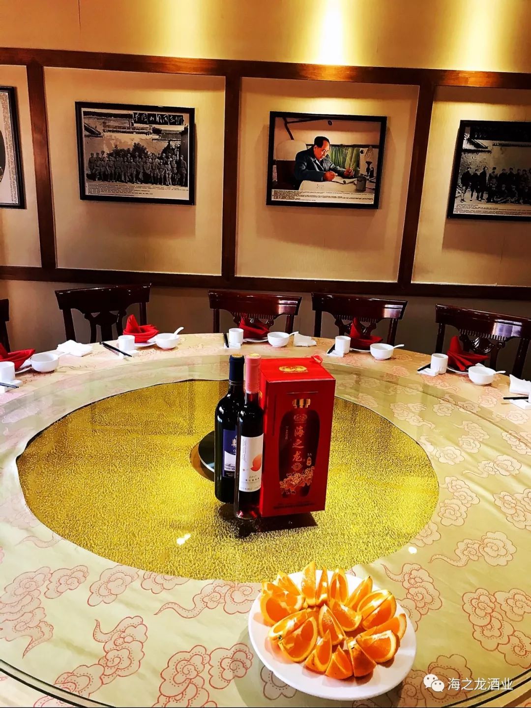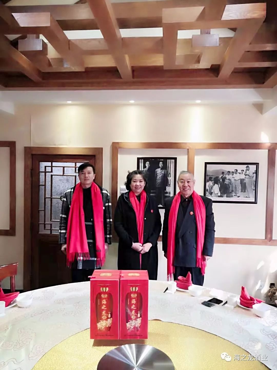 宴会中,毛主席身边的工作人员在品完海之龙酒后,对海之龙酒赞不绝口,纷纷表示海之龙酒不愧是酒中之龙,龙的传人就应该喝海之龙酒。在场的一位领导语重心长的说:“不忘初心,牢记使命”,海之龙酒业要将中国的酒文化和龙文化继续传承和发扬光大。