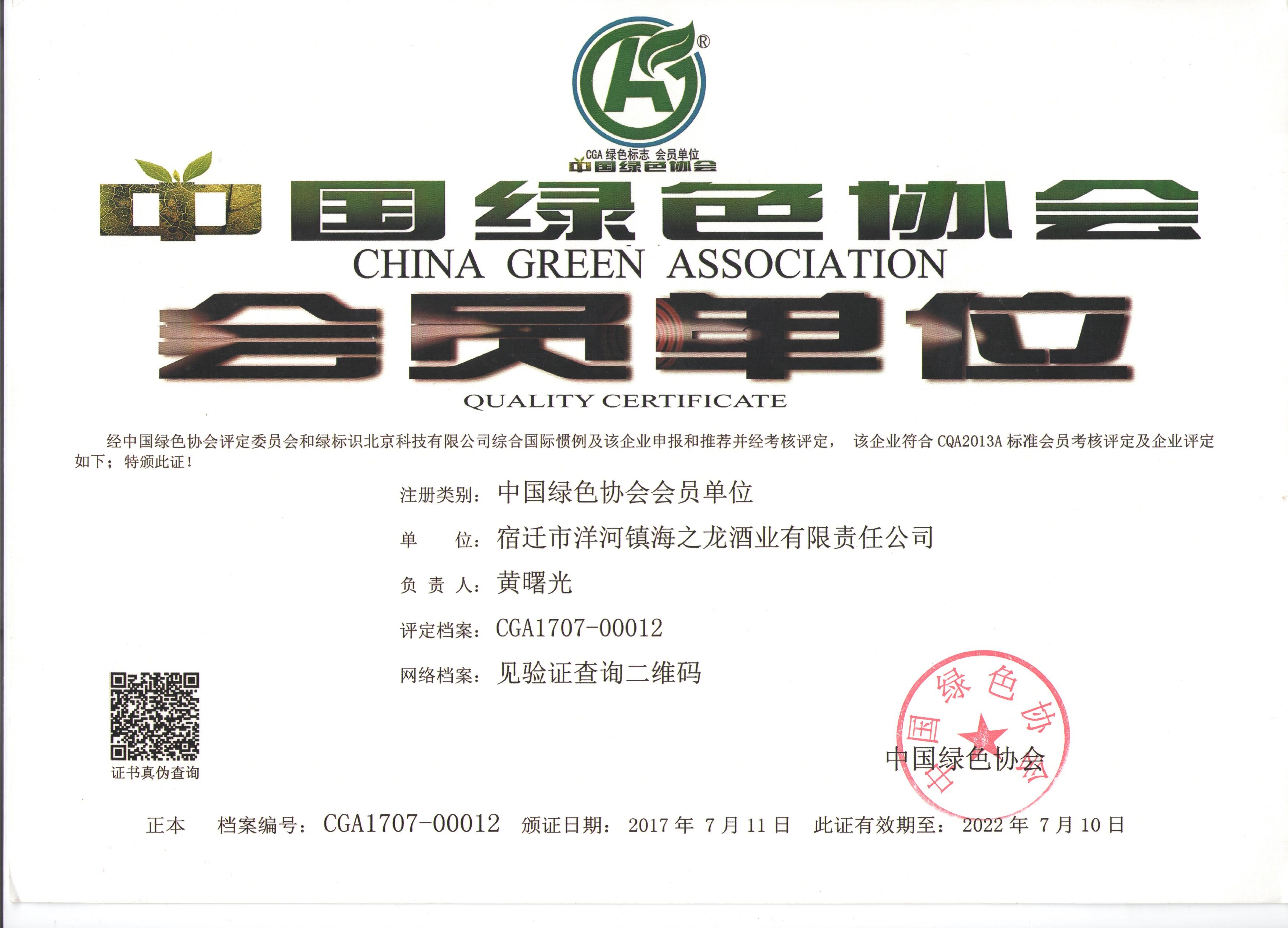 海之龙酒业体系认证书