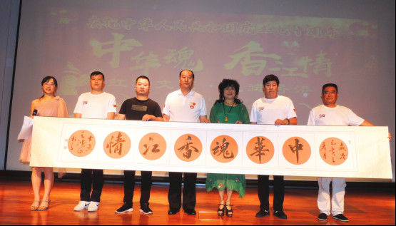 演出期间,世界华人书画家副主席王洪海先生题写“中华魂 香江情”书法一副赠送给组委会,宜兴市张渚镇红十字会常务副会长、中国好人、80岁贾林康老先生为本次活动特别纪念品紫砂壶赠送组委会。