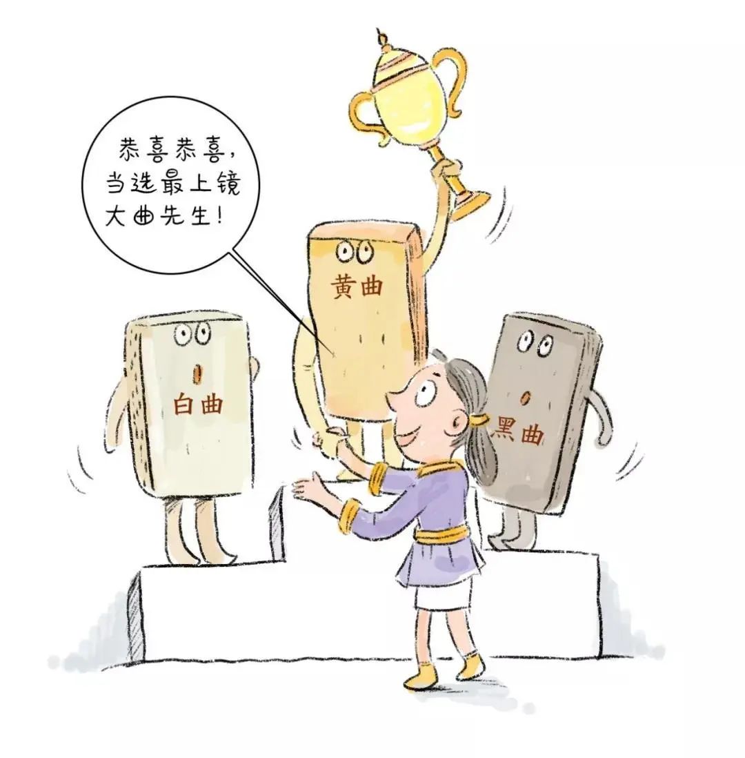 黄曲质量最优,白曲和黑曲的质量其次