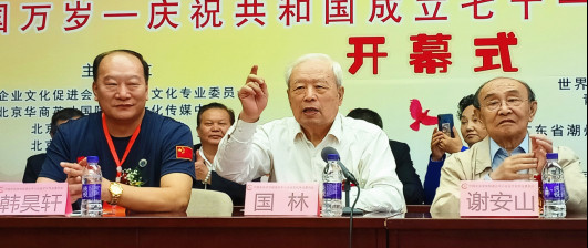原铁道部副部长国林、原江西军区原政委周日扬将军、联合国华人文化产业联合会主席、世界华人书画家协会主席韩昊轩、中国酒文化研究委员会秘书长、世界华人书画家协会副秘书长、香港华人杂志社新闻部副主任、苏小梦sunshine dream品牌创始人、江苏海之龙酒业股份有限公司董事长黄曙光等在主席台就座并分别致辞和讲话。