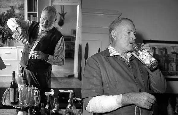 海明威是美国著名的作家。他非常嗜酒,一战期间受伤住院时,他就经常偷偷喝酒。而在《太阳照常升起》出版成名后,他过上了写作、喝酒、钓鱼和打网球的生活。他习惯饭前喝苦艾酒,饭间喝红葡萄酒,运动前喝伏特加,最后喝威士忌加苏打。晚上还要到酒吧喝酒,消除白天写作的疲劳,这也难怪他小说里的角色个个都是酒鬼了。